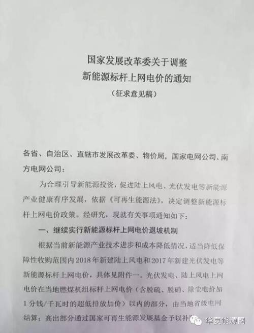 昨天(9月28日),華夏能源網(wǎng)發(fā)布了文章《光伏電價下調(diào)“靴子”落地?2017年三類資源區(qū)光伏電價將降至0.85元》(點擊閱讀),結(jié)果,今天發(fā)改委就正式出臺了《關(guān)于調(diào)整新能源標桿上網(wǎng)電價的通知(征求意見稿)》