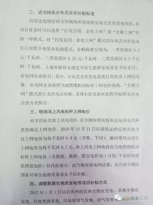 一、繼續(xù)實行新能源標桿上網(wǎng)電價退坡機制根據(jù)當前新能源產(chǎn)業(yè)技術(shù)進步和成本降低情況,適當降低保障性收購范圍內(nèi)2018年新建陸上風電和2017年新建光伏發(fā)電等新能源標桿上網(wǎng)電價,具體見附件一。光伏發(fā)電、陸上風電上網(wǎng)電價在當?shù)厝济簷C組標桿上網(wǎng)電價(含脫硫、脫硝、除塵電價加1分錢/千瓦時的