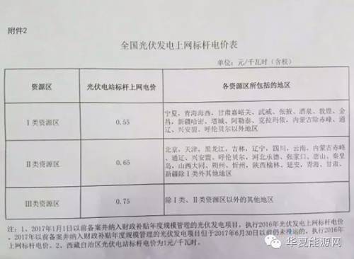 注:1、2017年1月1日以前備案并納入財政補貼年度規(guī)模管理的光伏發(fā)電項目,執(zhí)行2016年光伏發(fā)電上網(wǎng)標桿電價。2017年以前備案并納入財政補貼年度規(guī)模管理的光伏發(fā)電項目但于2017年6月30日以前仍未投運的,執(zhí)行2016年上網(wǎng)標桿電價。2、西藏自治區(qū)光伏電站標桿電價為1元/千瓦時。