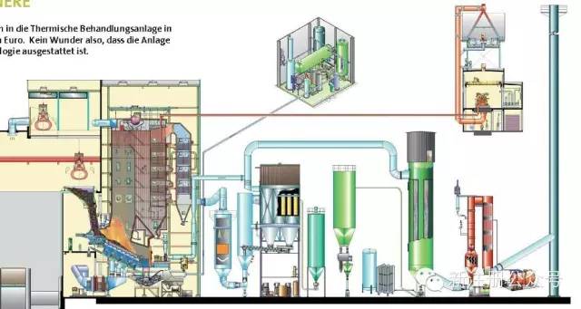 此工廠為奧地利能源2004年幫助建設投產的一個焚燒廠,是歐洲棄用濕法洗滌而改用更為先進的湍流吸收工藝(國內稱為循環流化床工藝)來完成脫酸。該廠的工藝為:急冷塔+湍流吸收工藝+活性炭吸附+SCR觸媒反應。