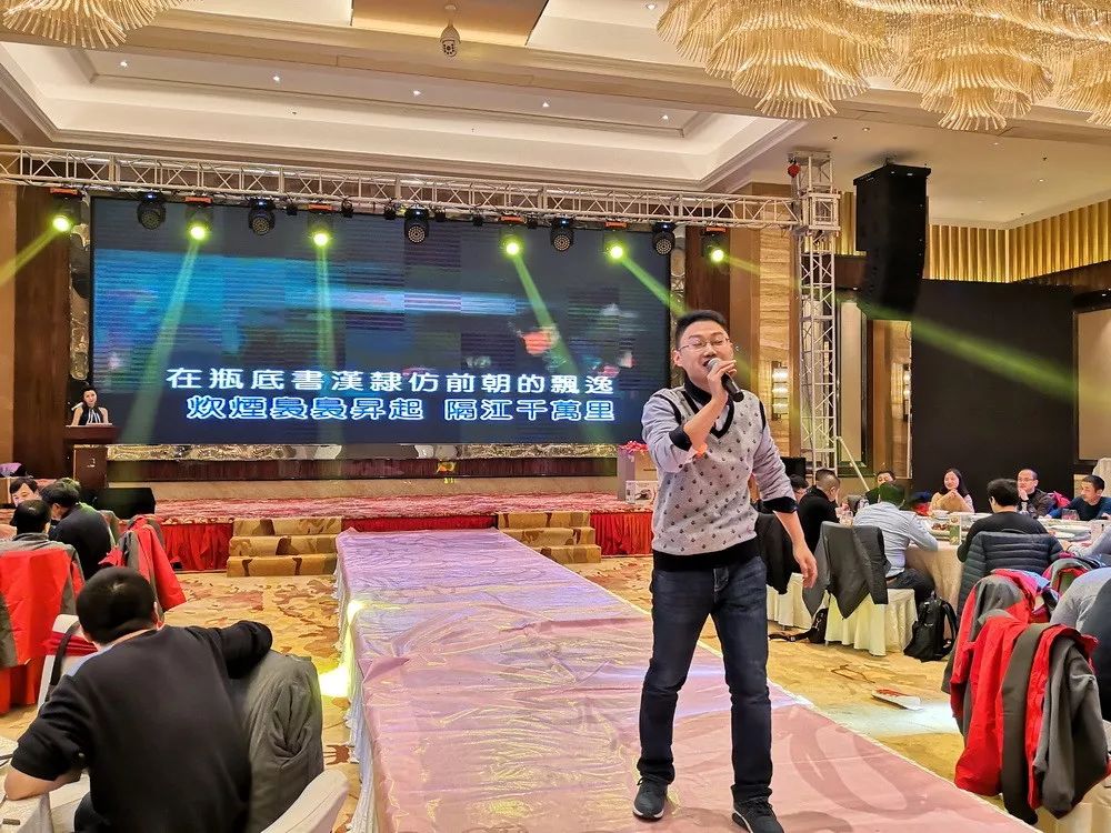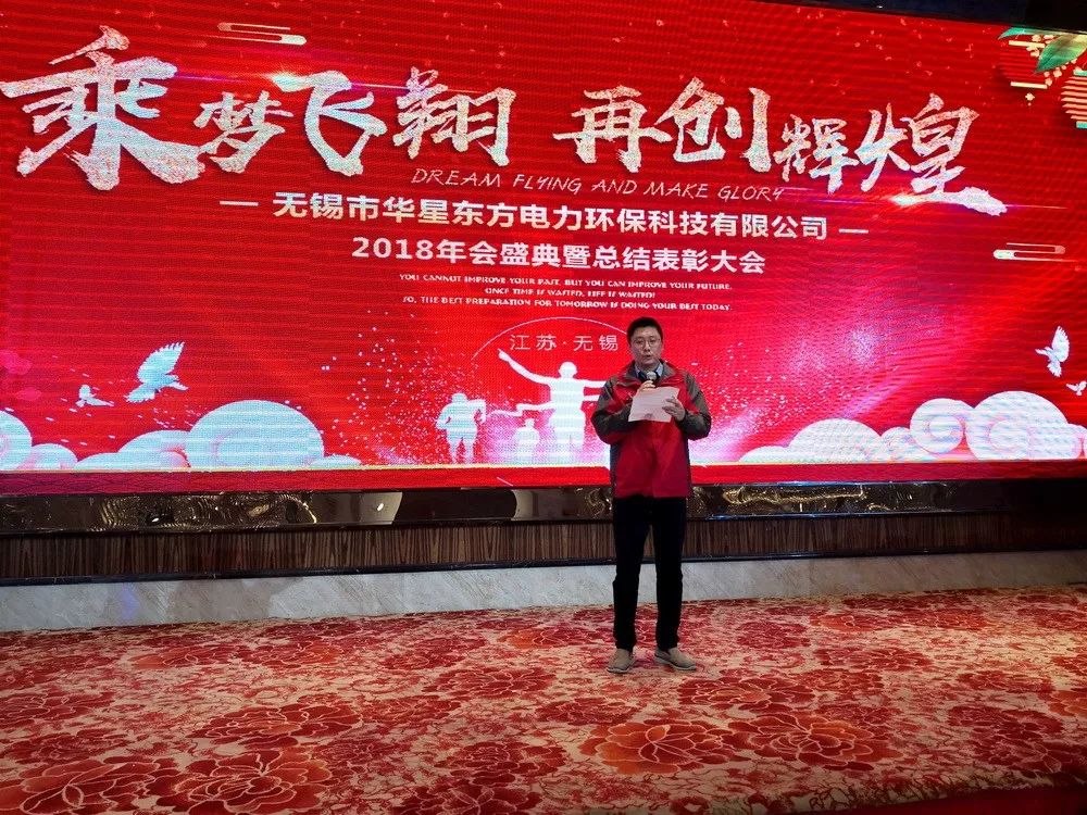 2019年1月11日,華星東方以“乘夢飛翔?再創輝煌”為主題的2018年度總結表彰大會暨年會盛典在無錫騰宏大酒店隆重召開,華星東方各級領導及蘇州東方鐵塔股份有限公司董事長韓匯如先生、青島東方鐵塔股份有限公司董事會秘書何良軍先生等一行出席并參加了此次年會和聯歡晚宴。 Huaxing East held its 2018 annual summary and commendation conference and annual meeting grand ceremony solemnly on the theme of flying with the dream to create the greater glory in Wuxi Tenghong Grand Hotel on January 11, 2019. The leaders at all levels of HXET, together with Mr. Han Huiru, Chairman of Suzhou East Tower Co., Ltd., and Mr. He Liangjun, Secretary of the board of directors of Qingdao East Tower Co., Ltd., were present and attended the annual meeting and the gala dinner.