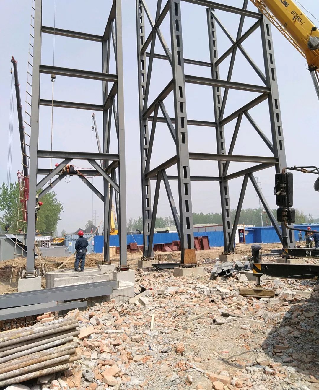 我司承建的淮北市生活垃圾焚燒發電煙氣凈化工程于2019年3月10日開工建設,現已進入鋼結構安裝環節。該項目建設2x750t/d焚燒爐和2×15MW抽凝式汽輪發電機組,采用旋轉霧化半干法脫酸+干法(碳酸氫鈉)脫酸+活性炭吸附+布袋除塵器+飛灰輸送、儲存及穩定化工藝,為我公司EPC項目。