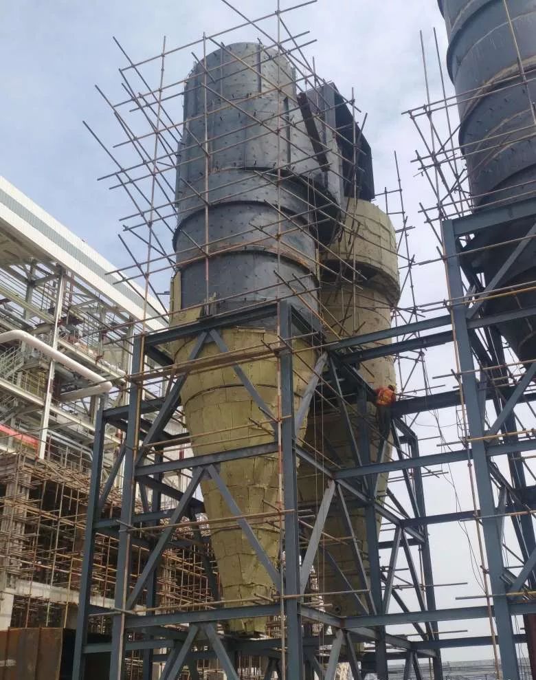 煙氣處理采用:旋風(fēng)除塵器+噴射干法脫硫設(shè)備+布袋式除塵器的處理工藝,為我司EPC工程。
