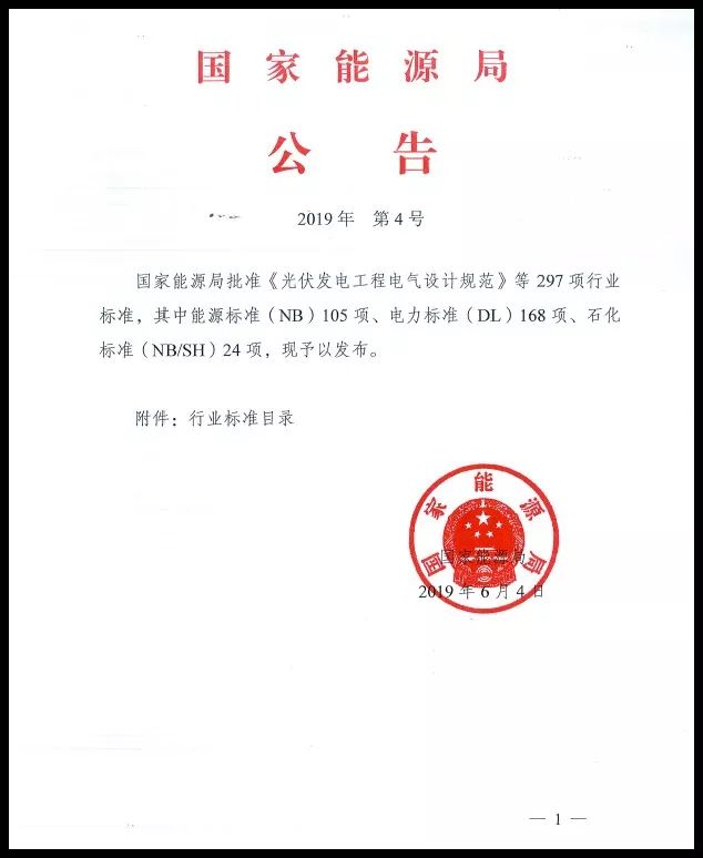 近日,國家能源局批準和發布《光伏發電工程電氣設計規范》等297項行業標準,其中能源標準(NB)105項、電力標準(DL)168項、石化標準(NB/SH)24項。