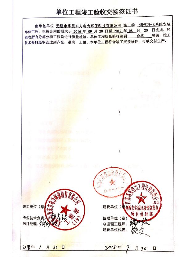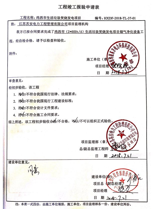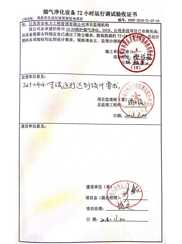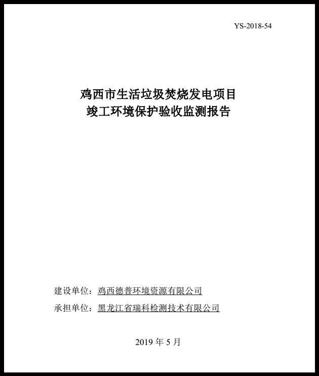 我公司承建的雞西市生活垃圾焚燒發(fā)電項(xiàng)目于2019年5月通過環(huán)保驗(yàn)收,現(xiàn)該項(xiàng)目運(yùn)行穩(wěn)定,各項(xiàng)參數(shù)符合設(shè)計(jì)要求。