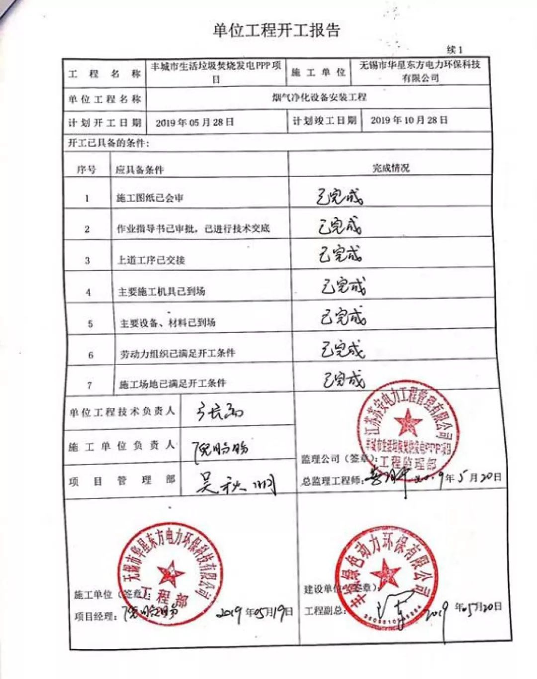 我公司承建的豐城市生活垃圾焚燒發電PPP項目煙氣凈化工程于2019年05月28日開工建設,現已經入SCR鋼結構支架吊裝環節。