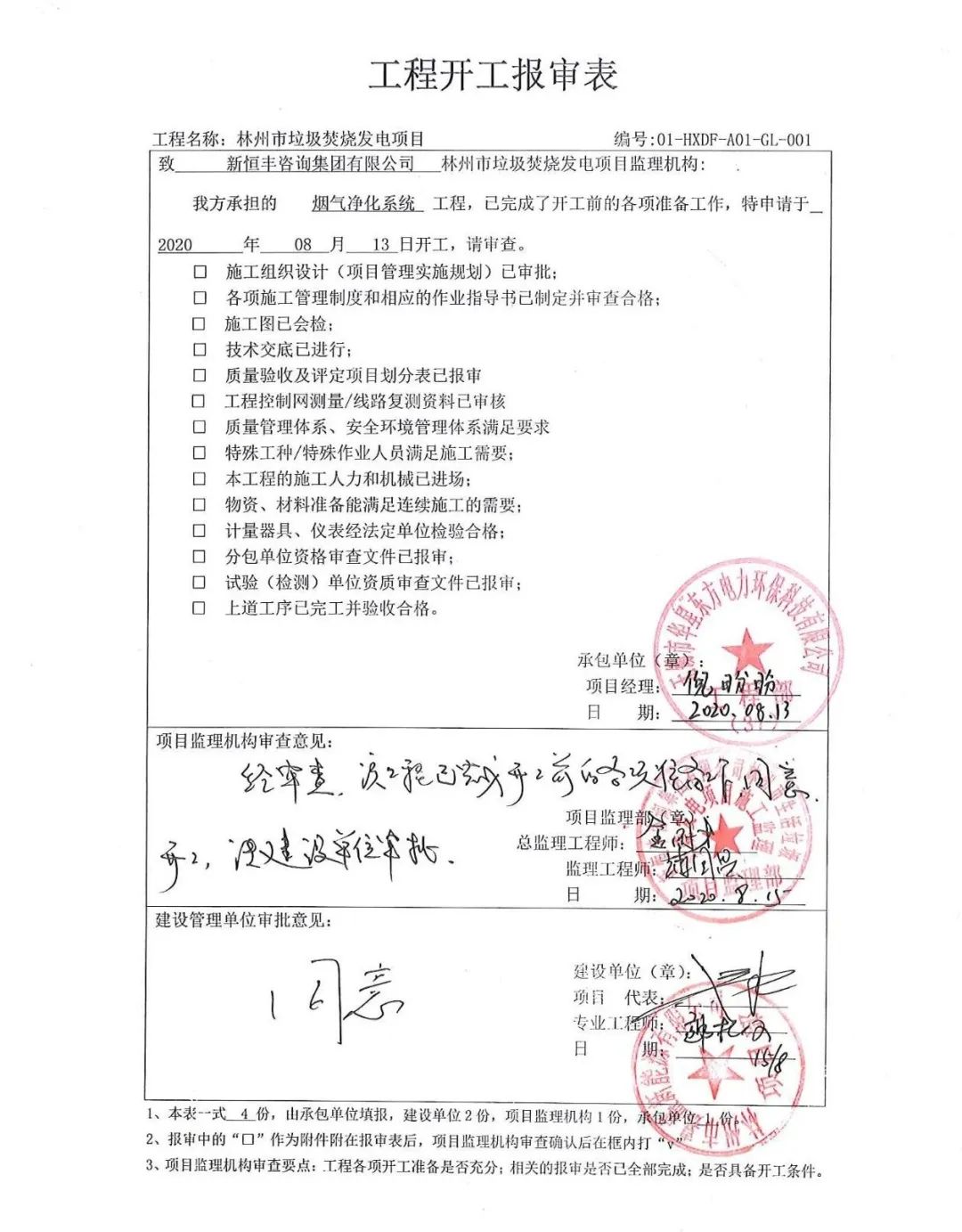 我公司承建的河南省林州市垃圾焚燒發(fā)電項目煙氣凈化工程于2020年8月13日開工建設,現(xiàn)已進入灰斗吊裝環(huán)節(jié)。