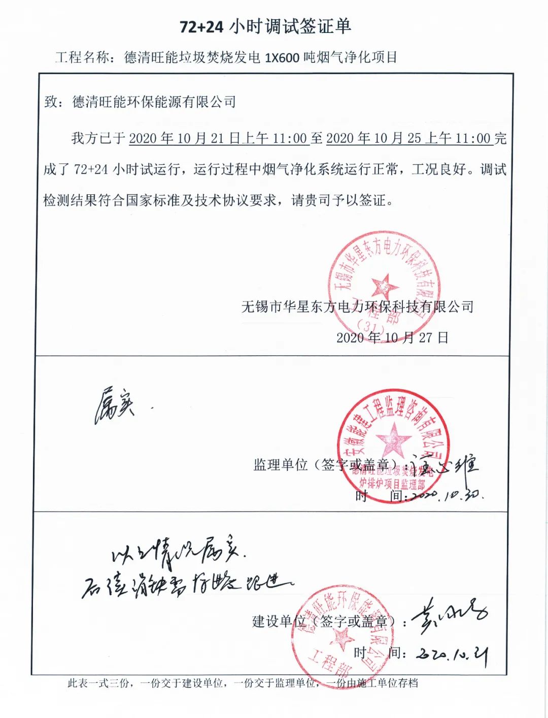 我公司承建的浙江省德清生活垃圾焚燒發(fā)電項(xiàng)目煙氣凈化工程于2020年10月29日通過72+24小時(shí)試運(yùn)行。