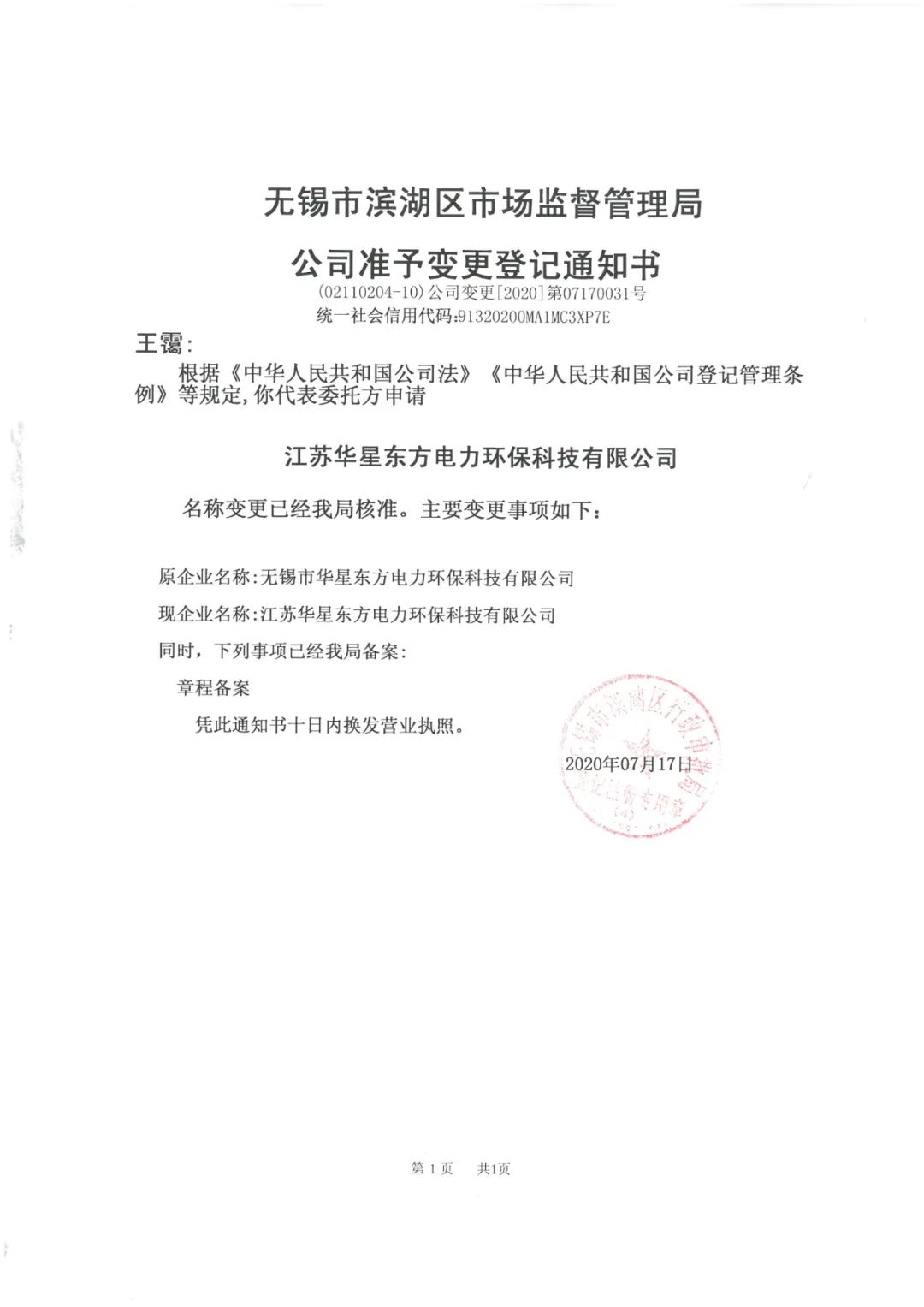 注:本項目申報時企業名稱為:無錫市華星東方電力環保科技有限公司,公司于2020年7月進行了更名,證書下發時以申報時企業名稱為準,故證書企業名稱仍為:無錫市華星東方電力環保科技有限公司,特此注明。