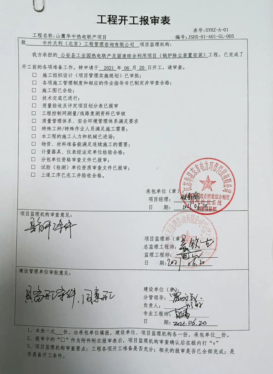 華星東方承建的湖北省公安縣山鷹華中熱電聯產及固廢綜合利用項目二期煙氣凈化工程開工建設