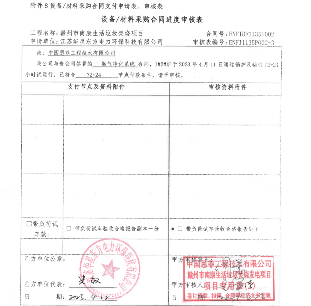 我公司承建的江西省贛州市南康生活垃圾焚燒發電項目煙氣凈化工程于2023年4月11日通過72+24小時試運行。 The flue gas cleaning (FGC) project undertaken by Huaxing-east for Nankang waste incineration power plant in Ganzhou, Jiangxi passed 72+24 hours trial operation on April 11, 2023.