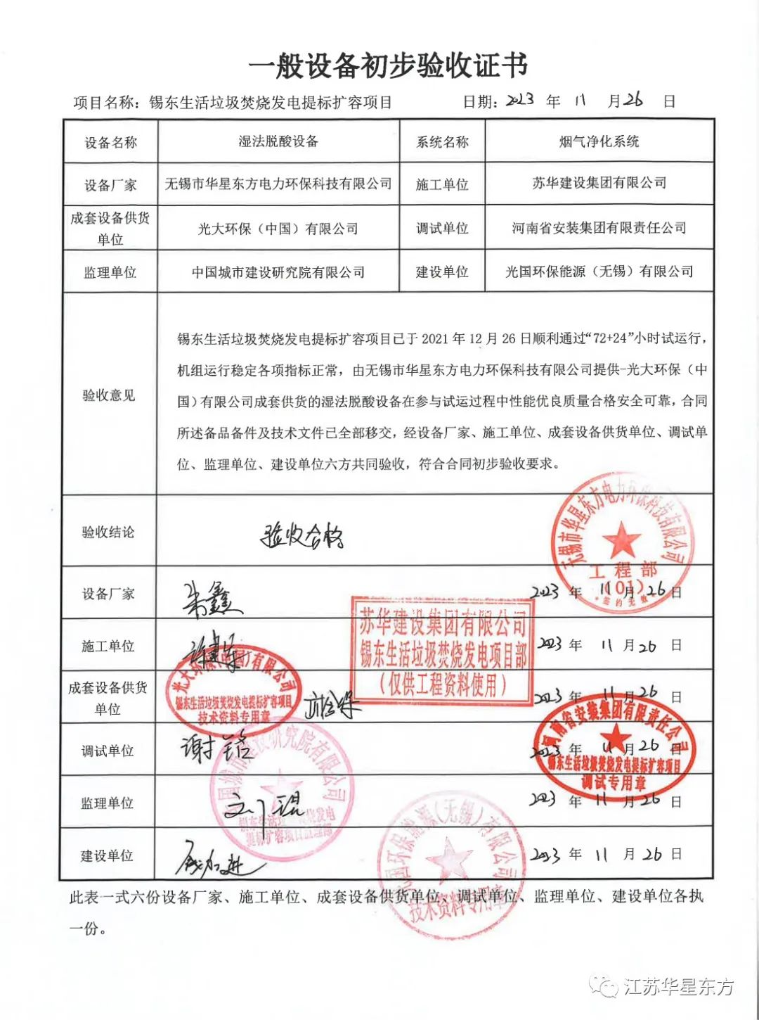 目前華星東方在江蘇省的業績涵蓋包括:無錫錫東二期、無錫益多、無錫惠聯二期、淮安、鹽城大豐、鹽城響水、連云港、宜興熱電、泰興、盱眙、宿遷宿城、常州、徐州、張家港、南京江北、宿遷宿豫(危廢)等多個項目。
