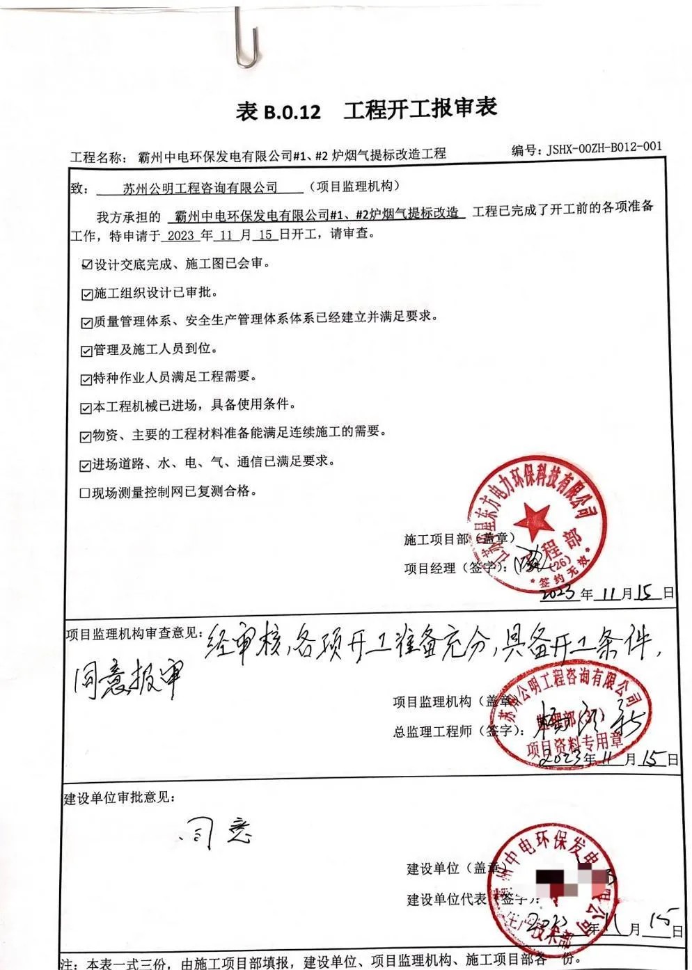 我公司承建的河北省廊坊市霸州生活垃圾焚燒發電項目煙氣凈化系統提標改造工程于2023年11月15日開工建設。