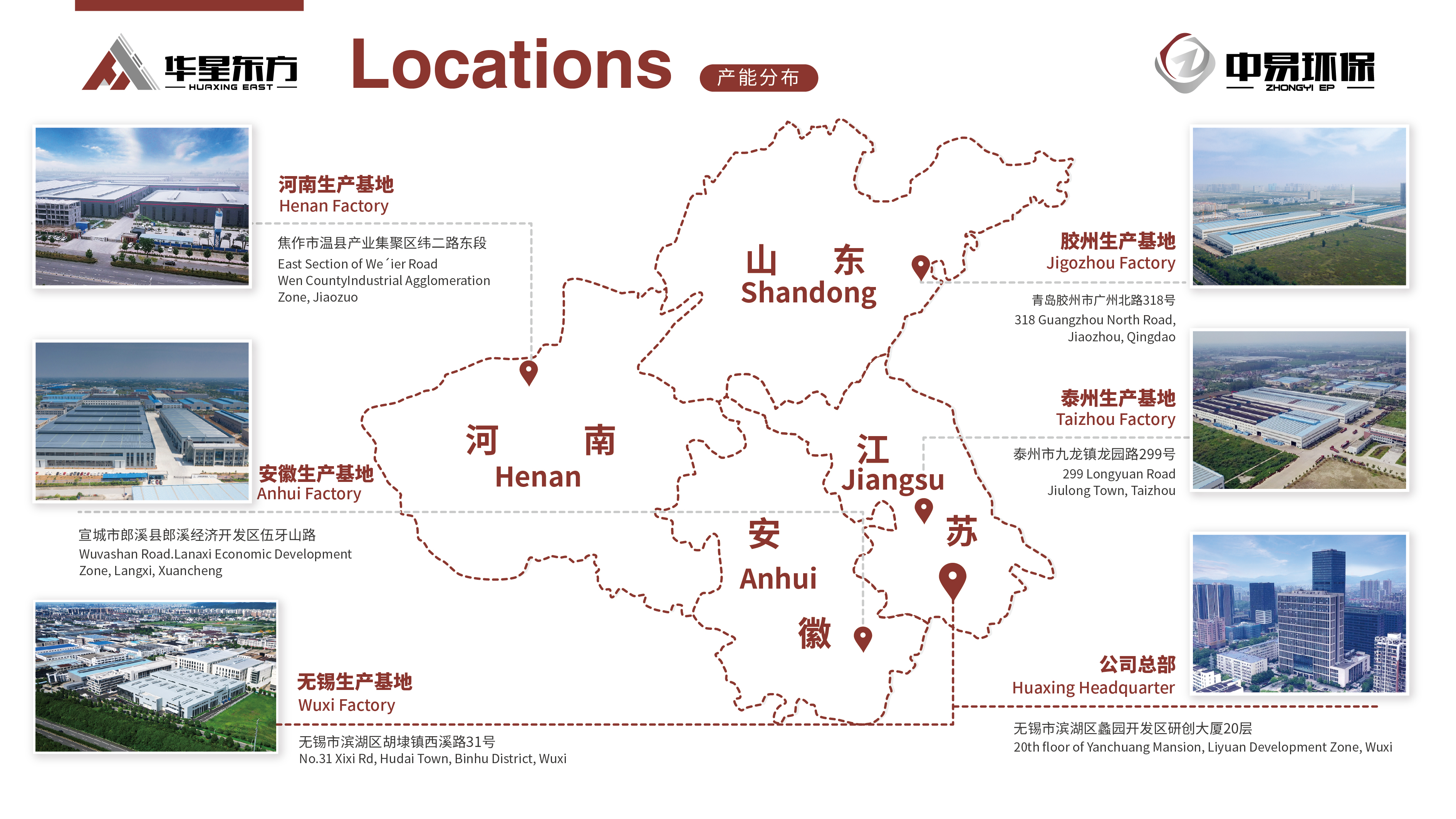 Huaxing East, alongwith East Steel Tower Stock Co.,Ltd. , is now striving to establish Jiangsu Huaxing East Electric Power Environmental Protection Technology as a leading FGC company owning varied industrial technologies, higher standards of manufacturing process, and great production capacity in the solid waste field.