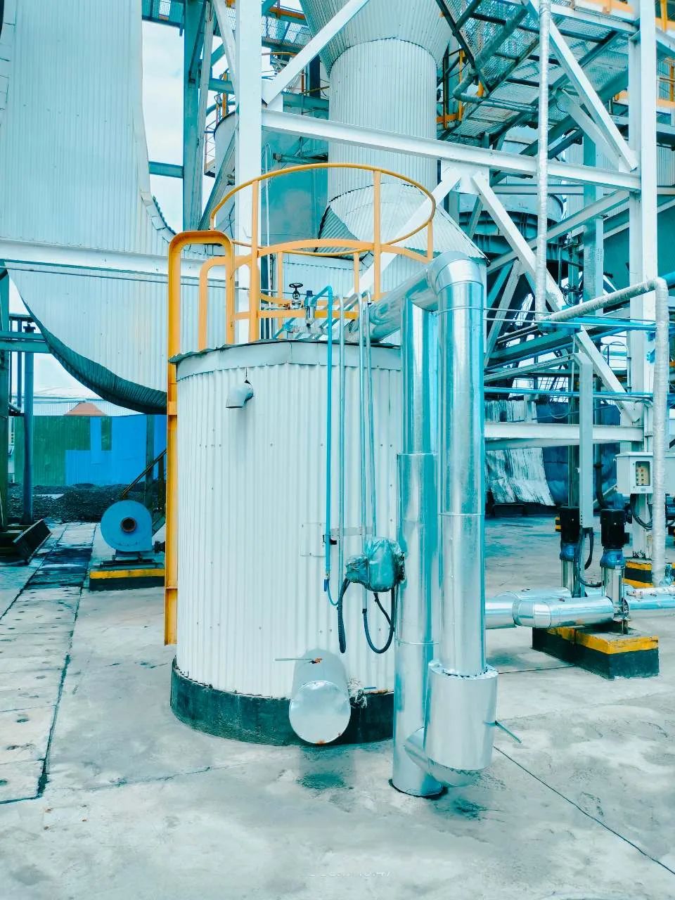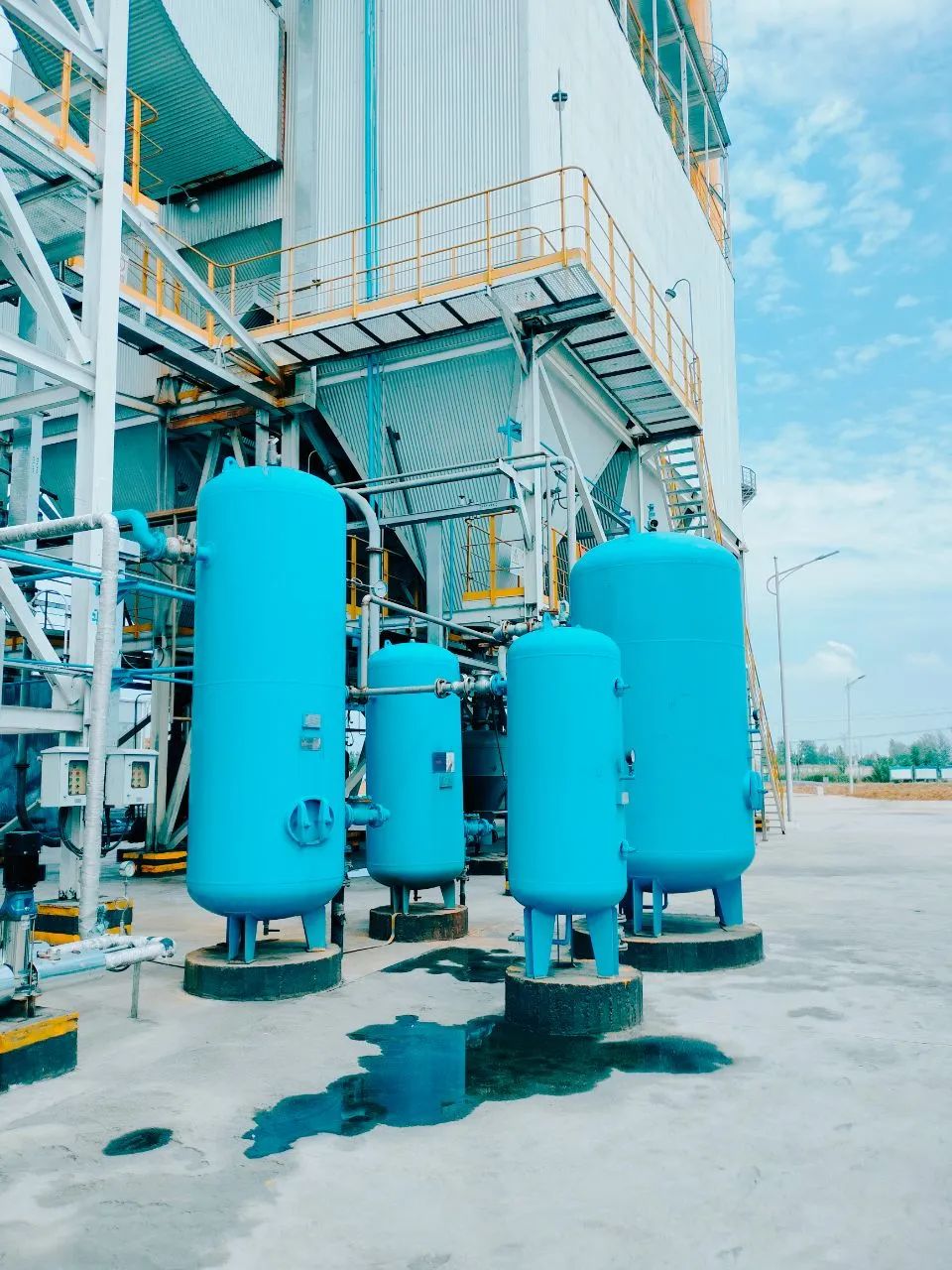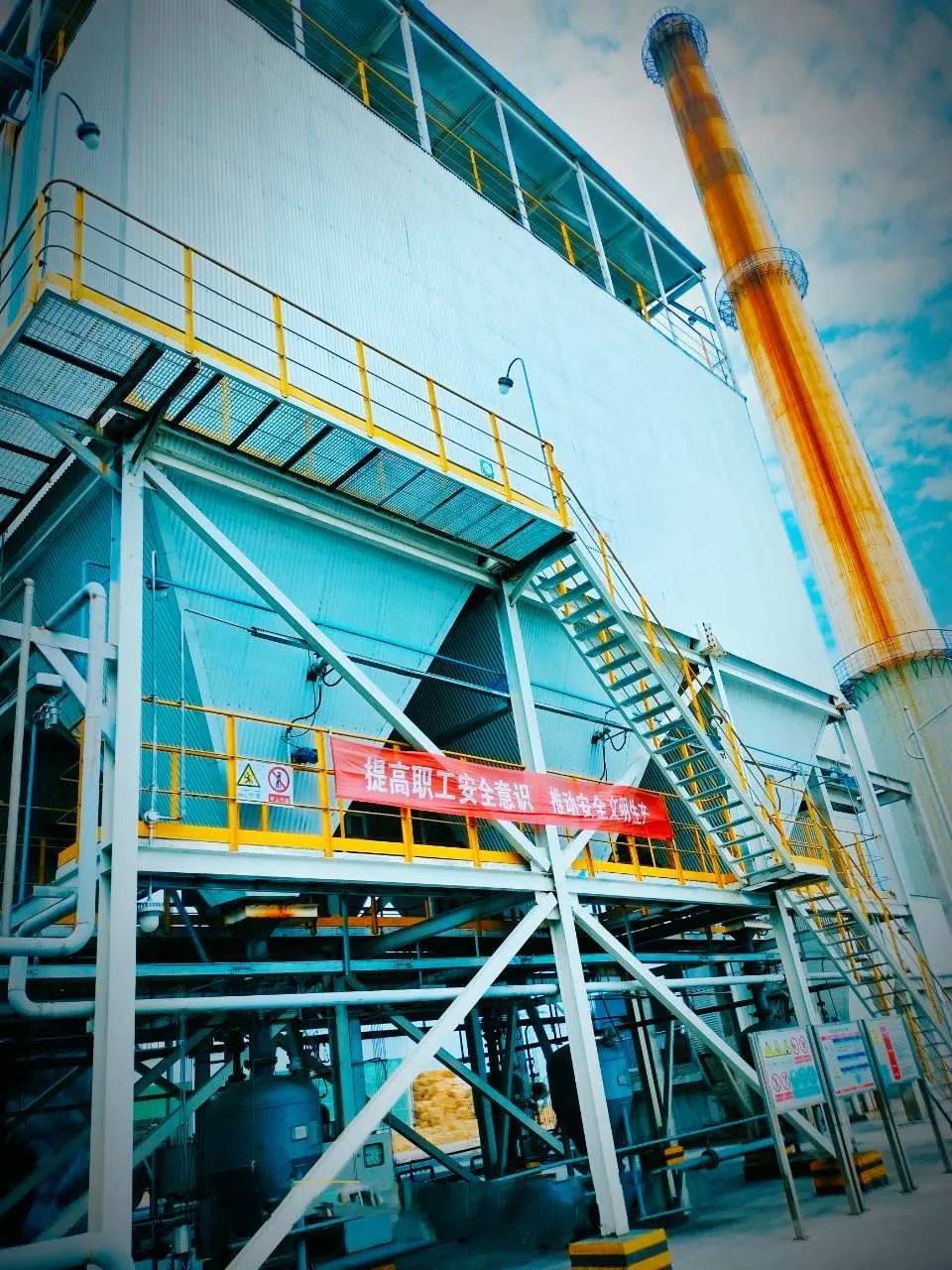The plant constructed a 1×130 t/h circulating fluidized bed (CFB) boiler with high-temperature and ultra-high pressure biomass, equipped with 1×30 MW extraction condensing steam turbine generator. The FGC adopted the process of "in-furnace calcium injection + flue gas denitration (not the scope of Huaxing) + cyclone ash pre-remover + lime injection and dry desulfurization tower + bag filter including desulfurization agent storage and conveying system, process water system, etc.". It is an EPC project of Huaxing.