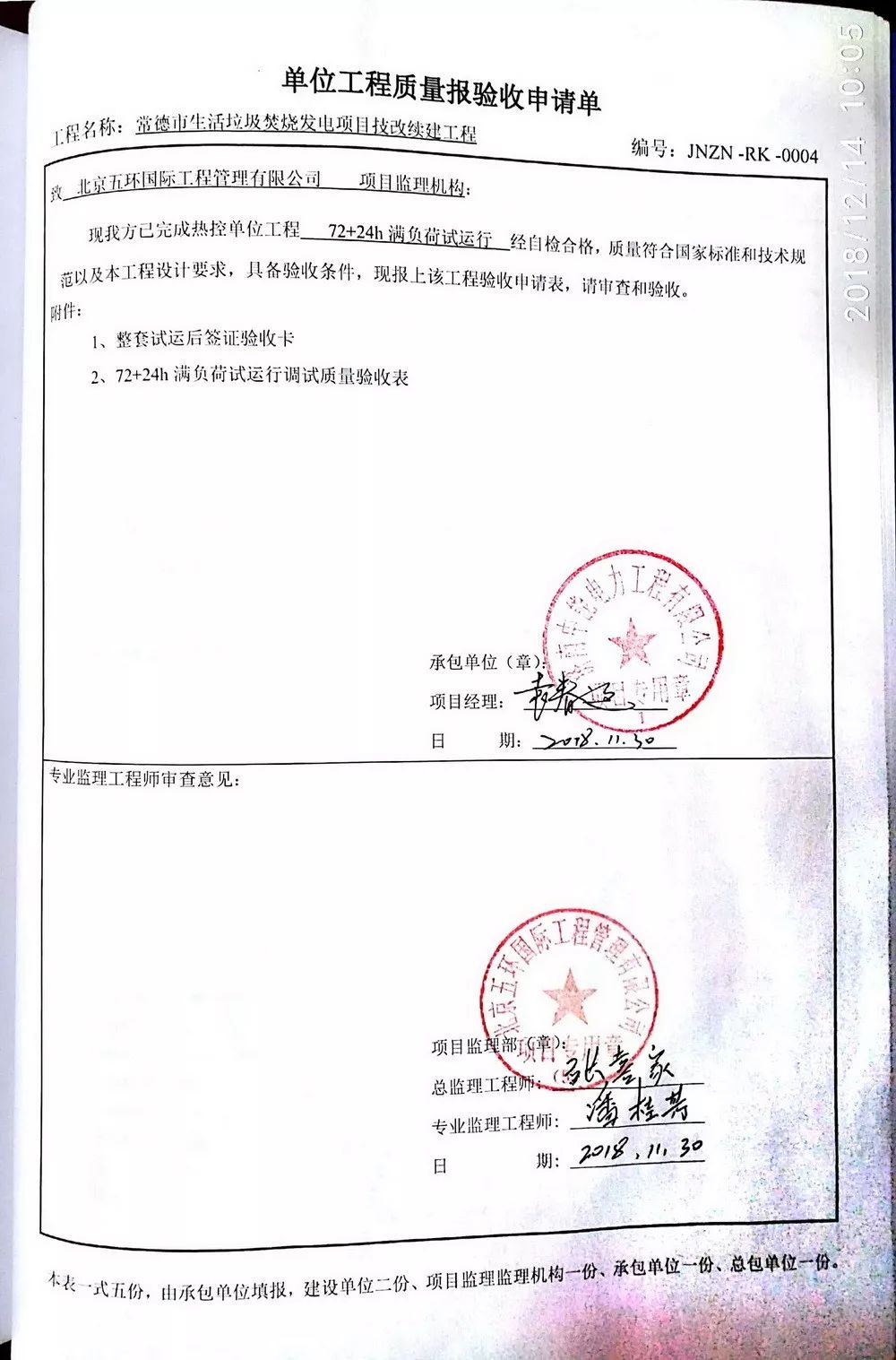 我公司中標承建的湖南常德1x660t/d爐排爐煙氣凈化工程項目于2017年7月28日開工建設,于2018年11月30日通過72+24小時竣工驗收。