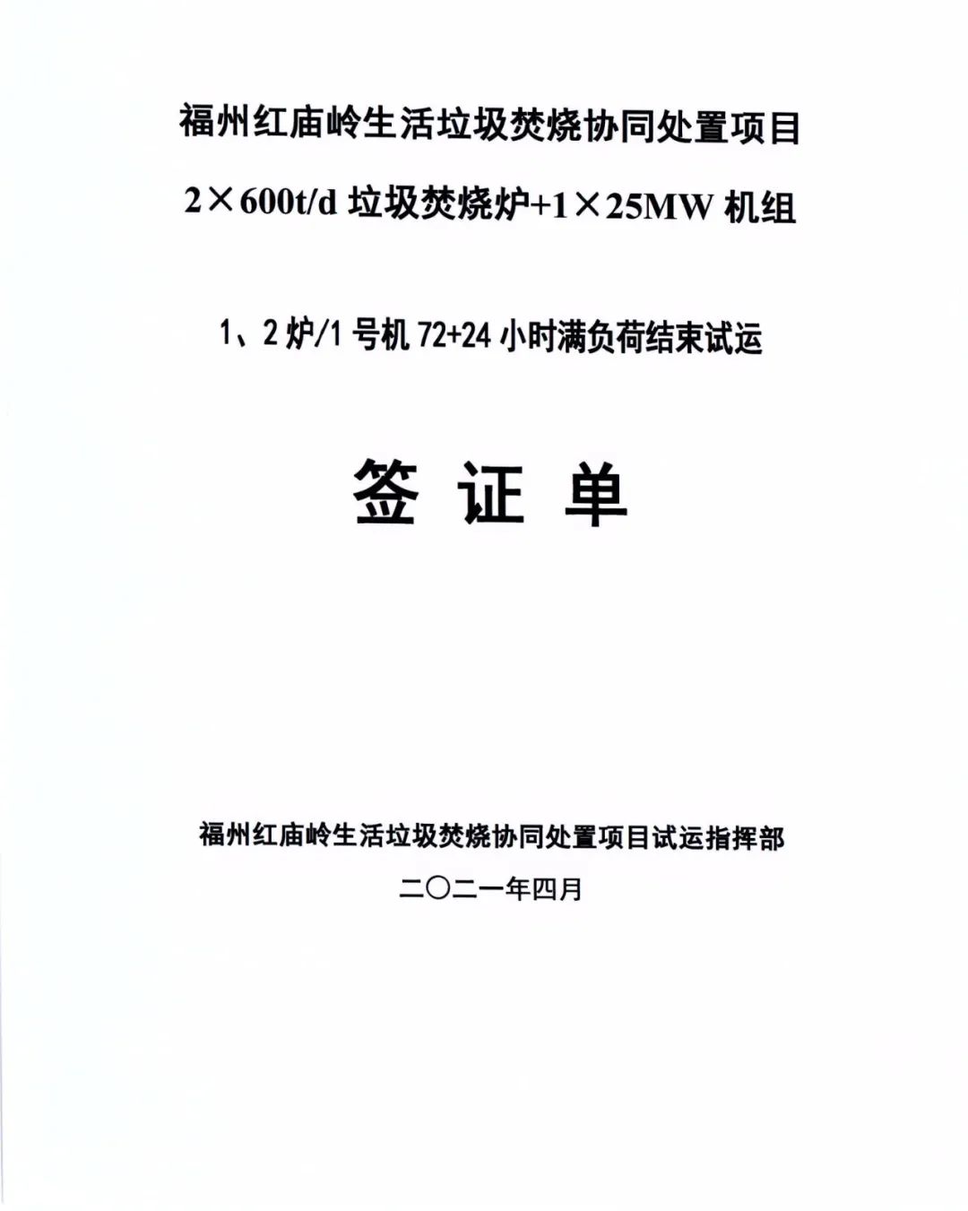 我公司承建的福建省福州市紅廟嶺生活垃圾焚燒發電項目煙氣凈化工程于2021年04月29日通過72+24小時試運行。 The flue gas cleaning (FGC) project undertaken by Huaxing-east for Hongmiaoling waste incineration power plant in Fuzhou, Fujian passed 72+24 hours trial operation on April 29, 2021.